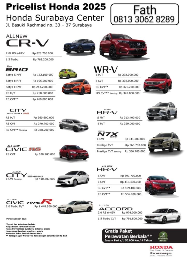 Pricelist Harga OTR Surabaya 2025 Surabaya